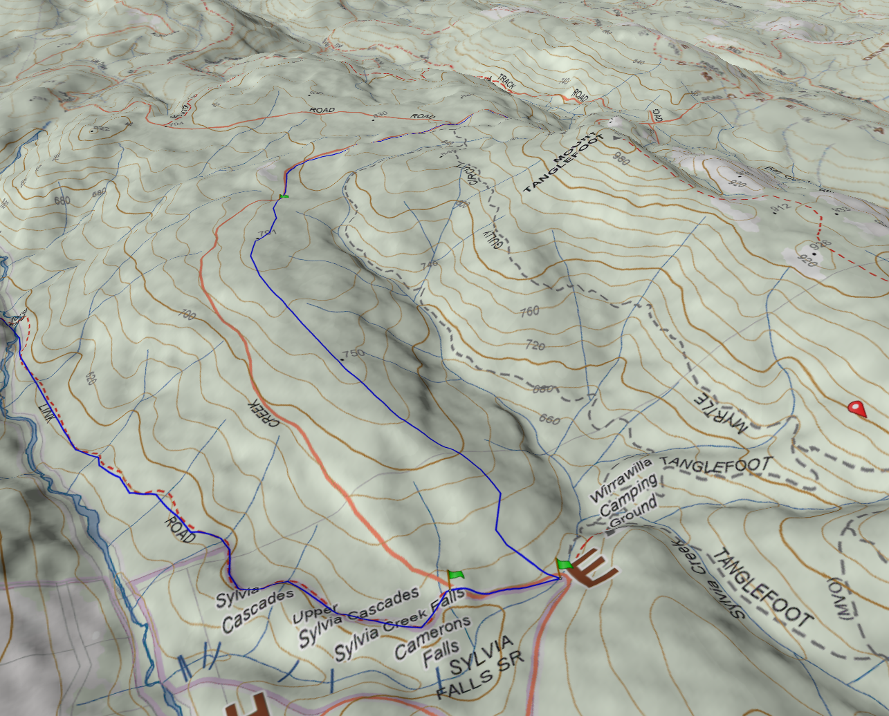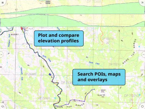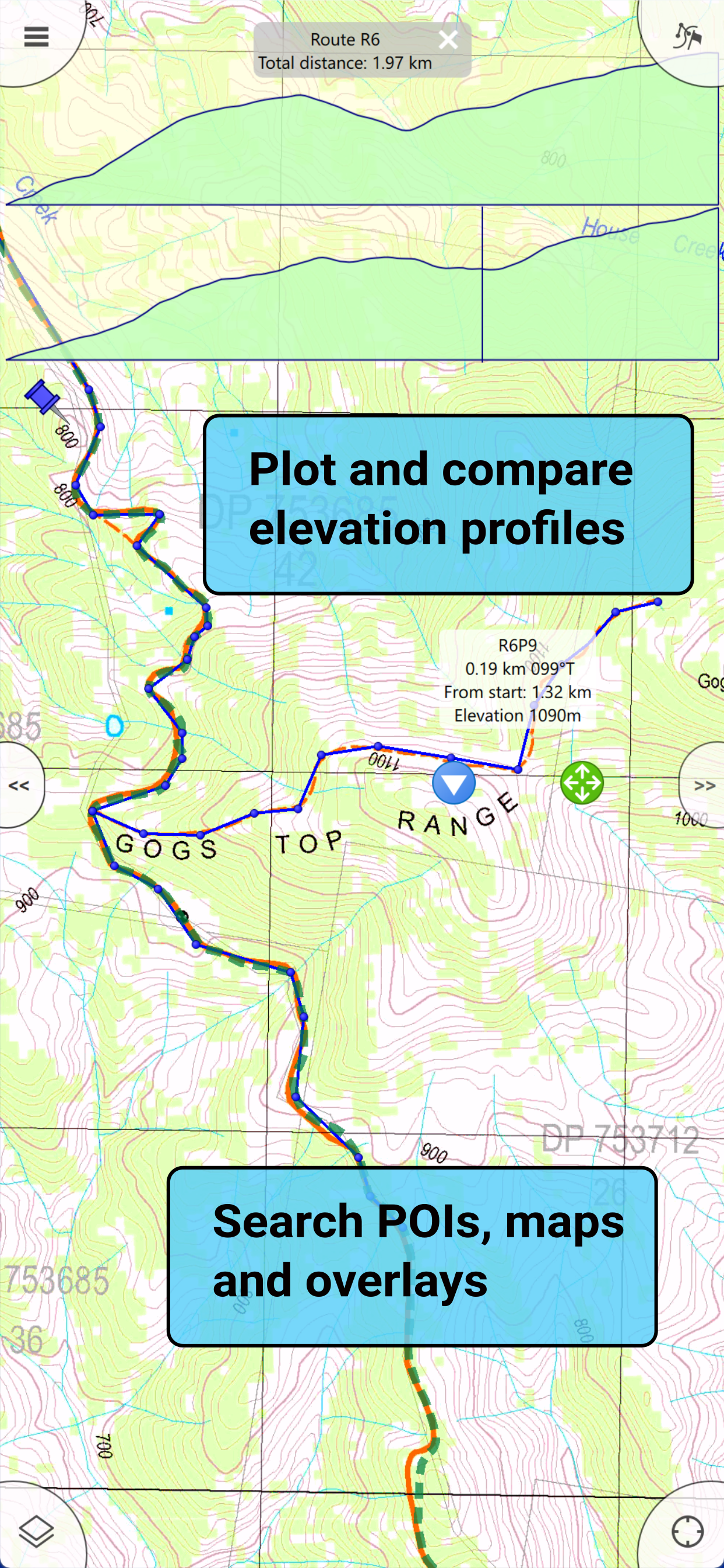 - Route terrain elevation profile, estimated walking time taking ascent into account